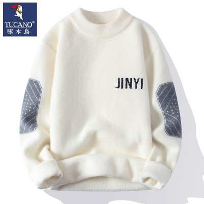 啄木鸟男士毛衣秋冬款半高领休闲针织衫男加厚保暖水貂绒打底上衣