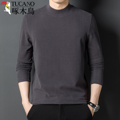啄木鸟男士秋季半高领纯色长袖T恤中年男装上衣服德绒体恤打底衫