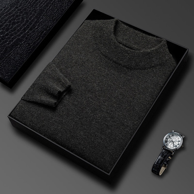 半高领秋冬新款山羊绒衫男士宽松显瘦厚款毛衣针织打底衫厚款保暖