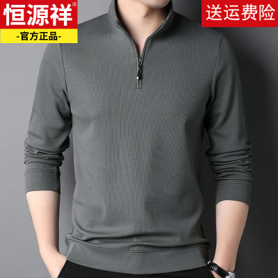 恒源祥男士长袖t恤半拉链立领春秋季新款上衣纯色休闲半高领卫衣