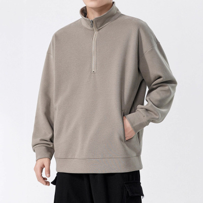 |重磅高领半拉链卫衣男秋冬宽松潮牌纯色休闲男士长袖外套