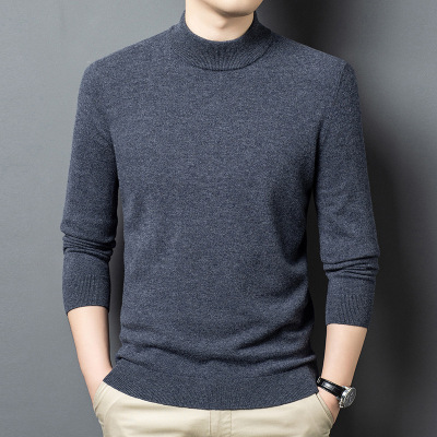 新款男士绵羊毛秋冬新款半高领纯色保暖打底毛衣男