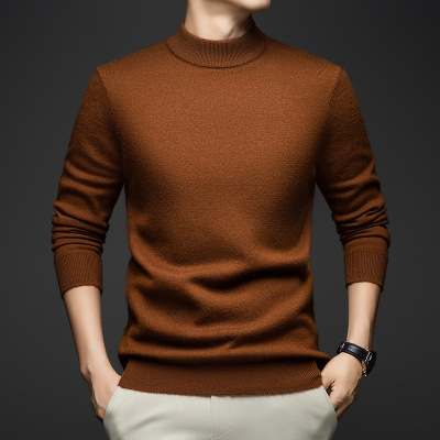 9针加厚420克男士羊毛衫冬季新款纯色半高领100%纯羊毛针织毛衣男