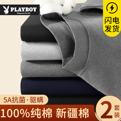 花花公子保暖内衣男士纯棉青少年秋衣秋裤套装高领全棉毛衫打底