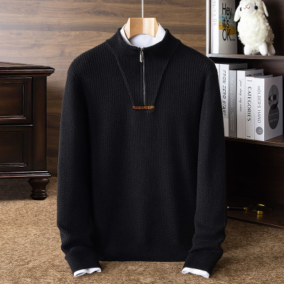 秋冬新款提花加厚商务羊绒青年男士半高领拉链针织羊毛衫轻奢毛衣