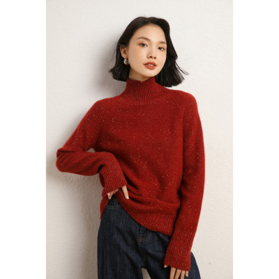 秋冬新山羊绒衫女加厚圣诞绞花半高领毛衣打底衫宽松针织内搭