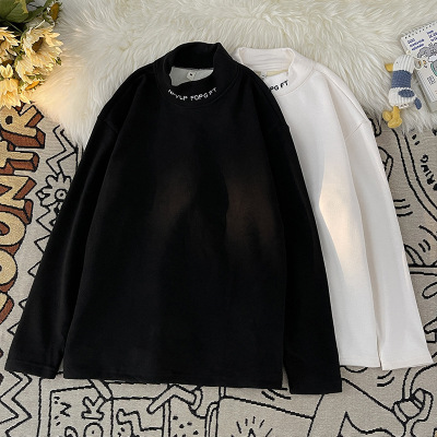 春秋季新款青少年卫衣男上衣美式潮牌长袖T恤男半高领内搭打底衫