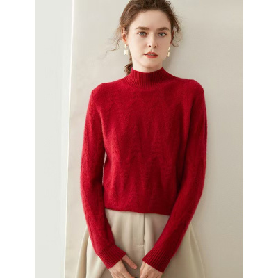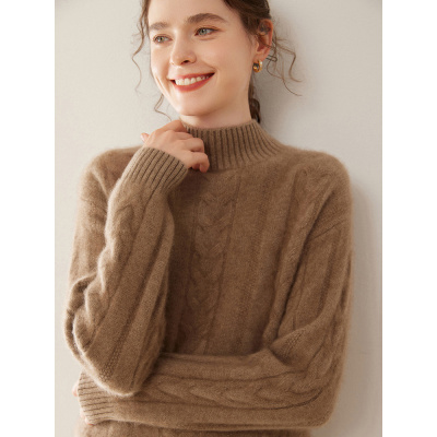 秋冬新山羊绒衫女加厚圣诞绞花半高领毛衣打底衫宽松针织内搭