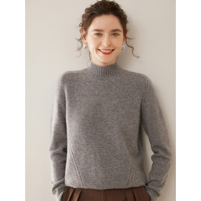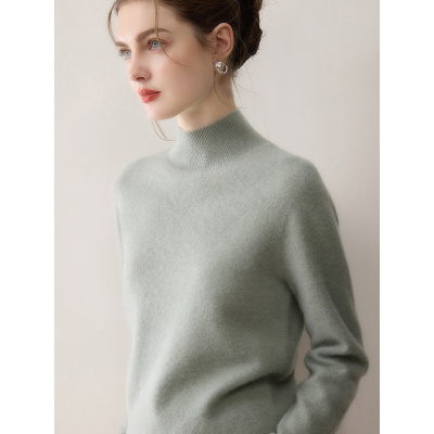 一线成型半高领100山羊绒衫女纯色百搭毛衣保暖针织内搭打底衫