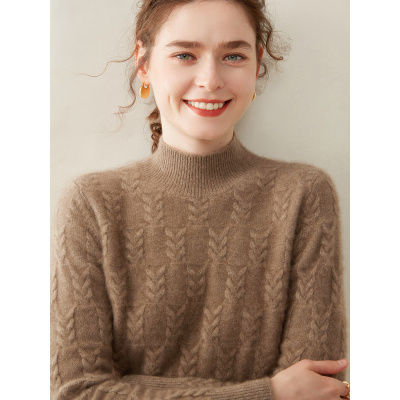 七针加厚麦穗羊绒衫女保暖山羊绒半高领套头羊毛衫针织打底衫毛衣