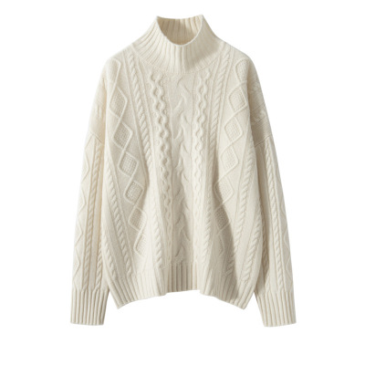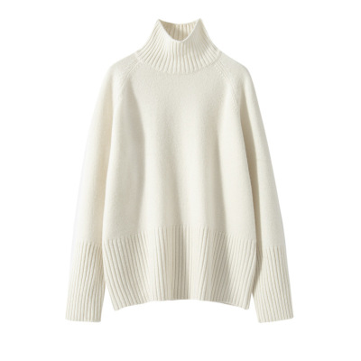 五针阔版纯色山羊绒衫女针织打底衫宽松显瘦厚款长袖套头高领毛衣