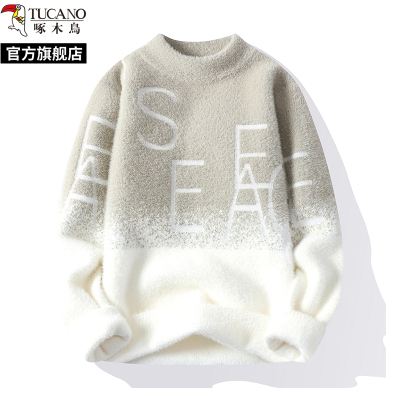 啄木鸟春秋冬季新款半高领套头渐变毛衣男一体加绒线衣针织衫外穿