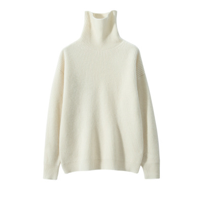 简约百搭高领七针纯色山羊绒衫女针织衫宽松显瘦慵懒风套头毛衣