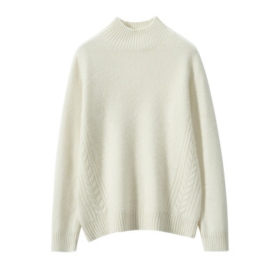 半高领两侧麻花设计套头纯色山羊绒衫女针织毛衣长袖套头上衣厚款