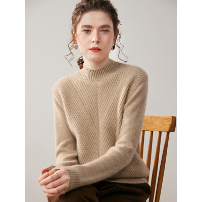 新款山羊绒衫女半高领菱纹秋冬软糯亲肤显瘦百搭针织打底衫毛衣女