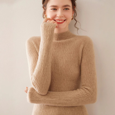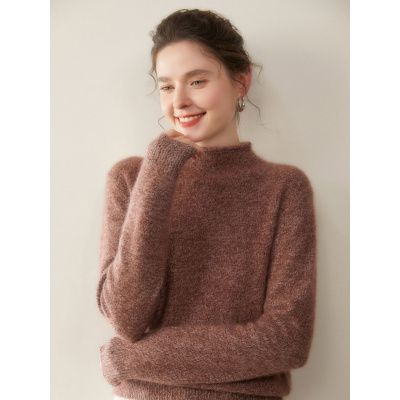 花纱半高卷边领山羊绒衫女七针双股加厚毛衣秋冬新款针织打底衫