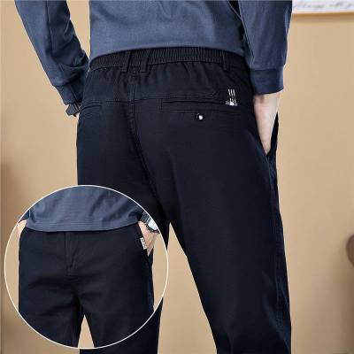 宽松男士高端休闲长裤加绒牛仔裤男士新款直筒裤子商务爸爸裤