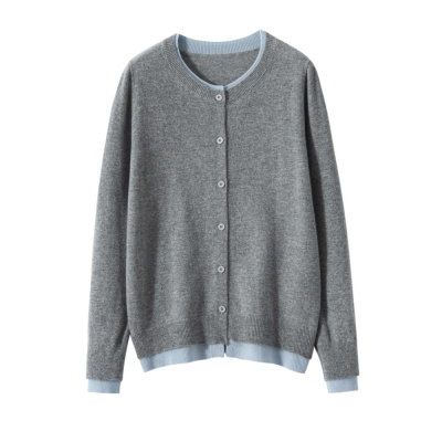 山羊绒衫春新款假两件撞色拼接舒适软糯羊绒圆领女士针织纽扣开衫