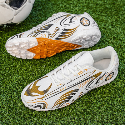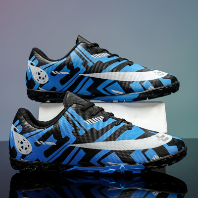 情侣款秋季新多色图案拼接运动轻便舒适透气户外缓震套脚pu足球鞋