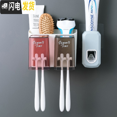 三维工匠牙刷置物架抖音牙刷架免打孔挤牙膏刷牙杯架儿童牙具架壁挂 领带少女