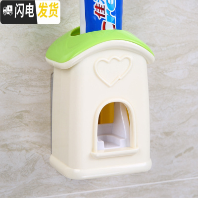 三维工匠牙刷置物架抖音牙刷架免打孔挤牙膏刷牙杯架儿童牙具架壁挂 绿色屋子挤牙膏器