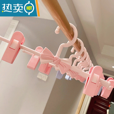 敬平美翻了!少女 蝴蝶结家用衣架晾衣夹晾衣架塑料裤架裤夹裙夹衣架 粉色裤架 10个