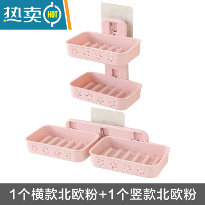 敬平创意双层肥皂盒壁挂沥水香皂盒静电贴式卫生间洗衣皂架免打孔 1个横款粉色+1个竖款粉色