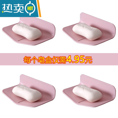 敬平肥皂盒壁挂香皂架免打孔皂盒沥水卫生间肥皂架壁挂式香皂盒非 [4个装,5折特惠]粉色