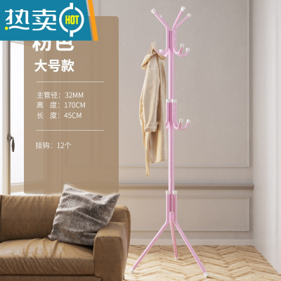 敬平落地卧室衣帽架简约现代铁艺欧式单杆挂衣架客厅立式晾衣架挂包架 加粗款32mm 粉色-12钩