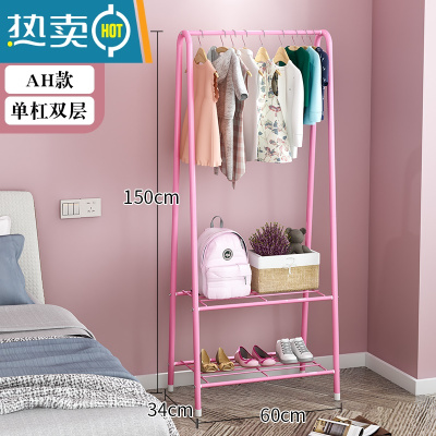 敬平宿舍挂衣架多功能晾衣架家用落地衣帽架租房小型收纳整理衣服架子 三角架桃粉色—55cm