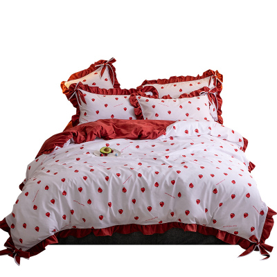 美帮汇小香风四件套全棉韩式少女心 全棉莓仙女款蝴蝶结被套一米五