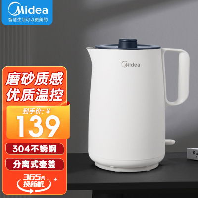 美的(Midea) 美的电热水壶双层防烫1.5L家用304不锈钢无缝内胆壶盖可拆洗1500W自动断电 MK-AEK153