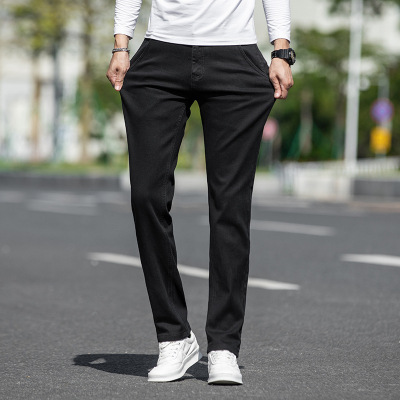纯黑色磨毛不色不起球弹力男式休闲牛仔裤男青年商务宽松直筒裤