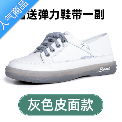 SUNTEK平底鞋女软底2023夏季新款休闲小白鞋护士单鞋牛筋底浅口皮鞋