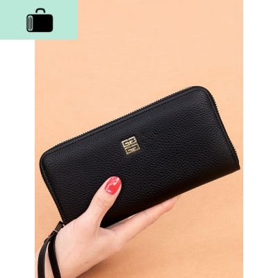 梦特娇钱包女长款 头层牛皮新款 手拿包 时尚拉链款 女手包多 卡位夹页真皮女士皮夹