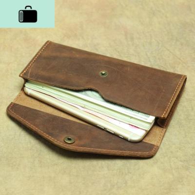 疯马皮新款男女信封钱包牛皮手机包长款纯牛皮复古钱夹简约手拿包NEW LAKE女手包