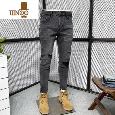 YANXU九分牛仔裤男薄款韩版显瘦修身小脚裤子新款弹力黑色长裤潮