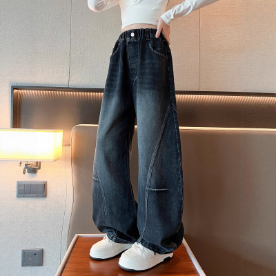 女童牛仔裤春秋款新款秋装儿童时尚休闲裤大童女孩直筒阔腿裤