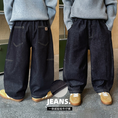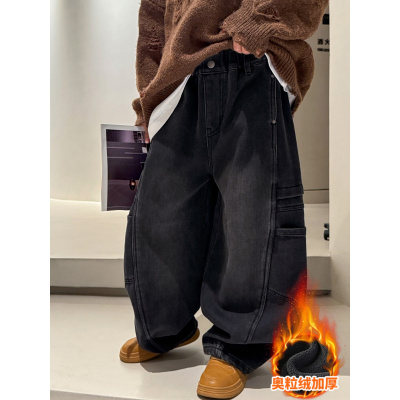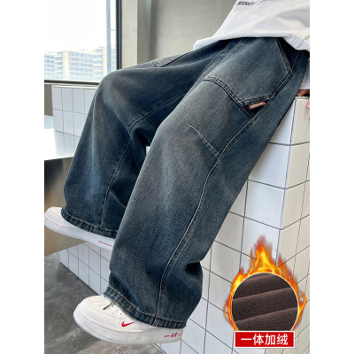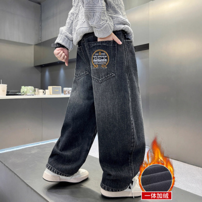 男童加绒牛仔裤秋冬新款儿童阔腿裤子加厚中大童冬季长裤炸街