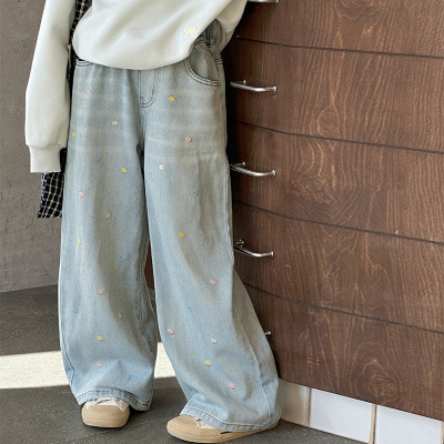 女生春秋装牛仔裤新款初中生女款衣服女大童阔腿裤女孩裤子秋
