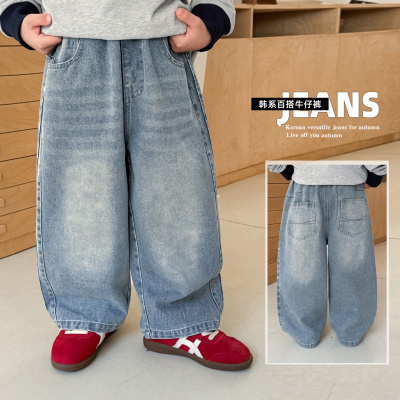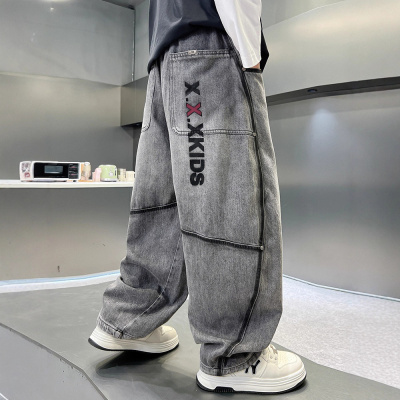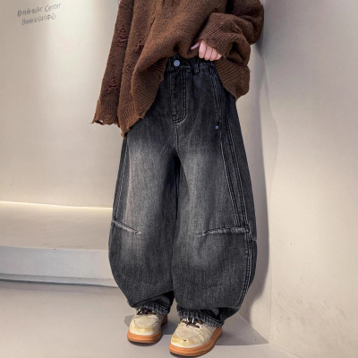 男童牛仔裤春秋款2026新款中大童春装长裤洋气儿童直筒裤子宽松潮