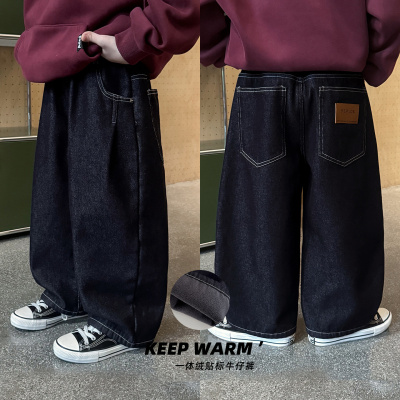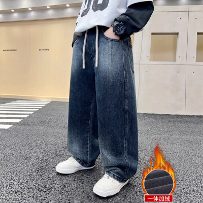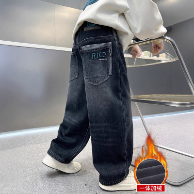 男童加绒牛仔裤宽松阔腿裤保暖年新款中大童韩版直筒休闲裤潮