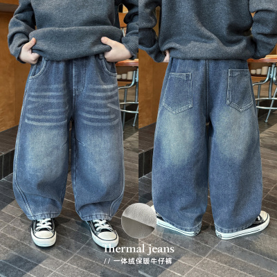 男童秋冬一体绒牛仔裤新款大儿童冬季加厚长裤加绒裤子潮