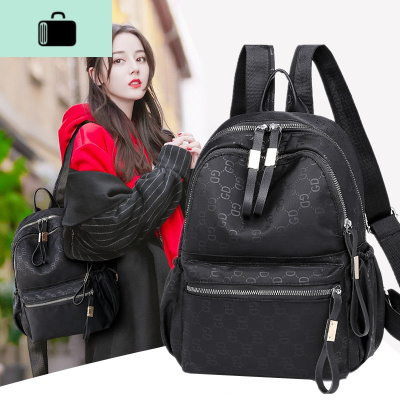 防水春夏双肩包女2020新款韩版潮牛津布背包女士尼龙时尚帆布书包NEW LAKE 黑色送镜子香囊运费保险