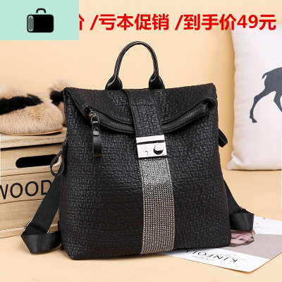 双肩包女包包2020新款潮韩版时尚百搭皮大容量学生书包女士背包NEW LAKE 黑色[收藏加购送皮卡包]