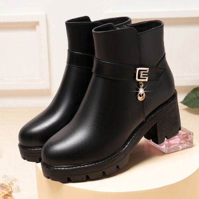 女鞋春秋女鞋中筒粗跟增高靴子秋冬新中跟厚底防水台妈妈鞋