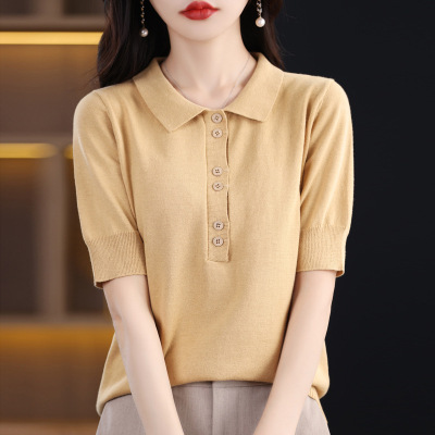 透气天丝25夏季新款女装翻领短款时尚T恤薄款打底衫上衣短袖