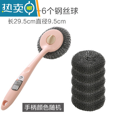 敬平长柄锅刷厨房清洁洗锅刷子家用去污多功能洗碗刷锅钢丝球刷锅器 1个手柄+6个钢丝球刷头