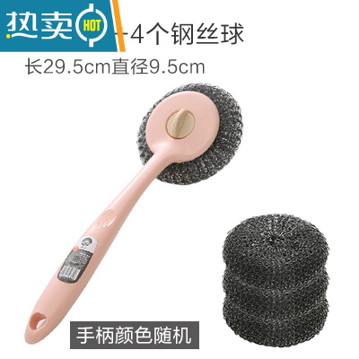 敬平长柄锅刷厨房清洁洗锅刷子家用去污多功能洗碗刷锅钢丝球刷锅器 1个手柄+1个钢丝球刷头