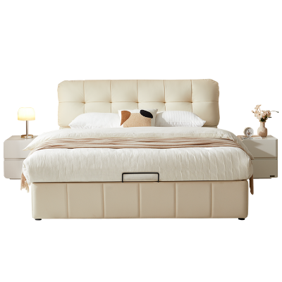 全友家居奶油风单人落地储物床2024新款卧室小户型真皮床